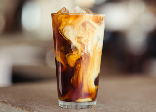 Seriously smooth and sweet espresso, milk, ice, and vanilla topped with whipped cream and mocha sprinkles.