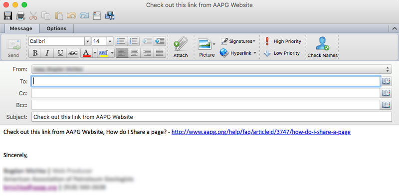 Note: If you share a restricted page (ex. only accessible by AAPG Members) users will be asked to login when they click the link. If they do not have the proper credentials they will then see an Access Denied message.