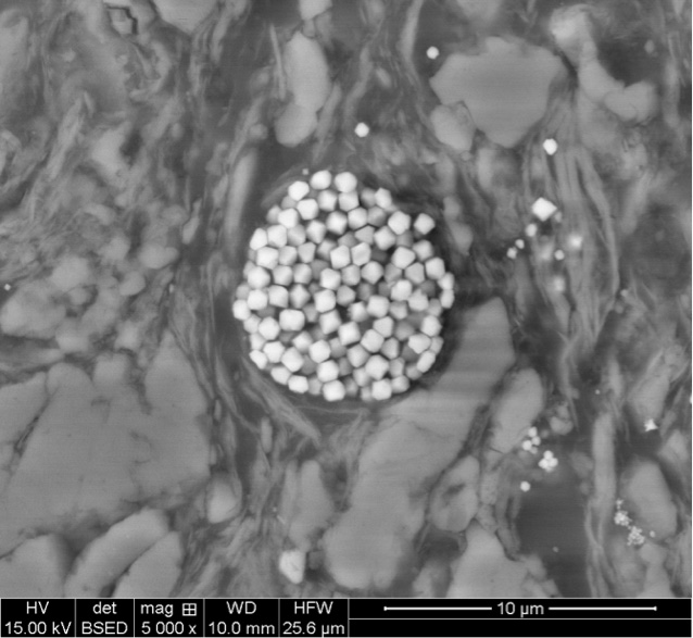 If you are interested in learning more about pyrite framboid formation we highly recommend Wilkin and Barnes, 1997, Formation Processes of Framboidal Pyrite, Geochimica et Cosmochimica Acta, Vol. 61, No. 2 pp 323-339.