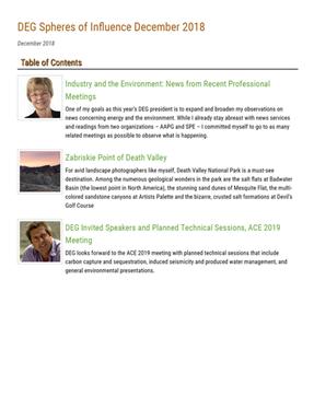 DEG looks forward to the ACE 2019 meeting with planned technical sessions that include carbon capture and sequestration, induced seismicity and produced water management, and general environmental presentations.