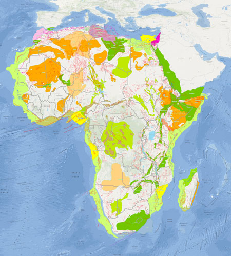 One of the key maps from the Exploration Fabric of Africa mapping projet, "Classified Basins" displays the basins of the African continent according to the Kingston Classification. Projection: Africa Albers Equal Area Conic. Updated 2012 from an original work by E. G. Purdy (1989). GIS formats available now to program sponsors, and to the general public in 2015.