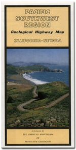 This colorful, educational map presents state/regional surface rock outcrop information - age, depositional environment, rock type, and names of formations. Map includes major highways, towns, and landmarks. Printed on a single sheet and folded to glove compartment size, each has a stratigraphic column by state, mileage charts, and may depict spots of interest.
